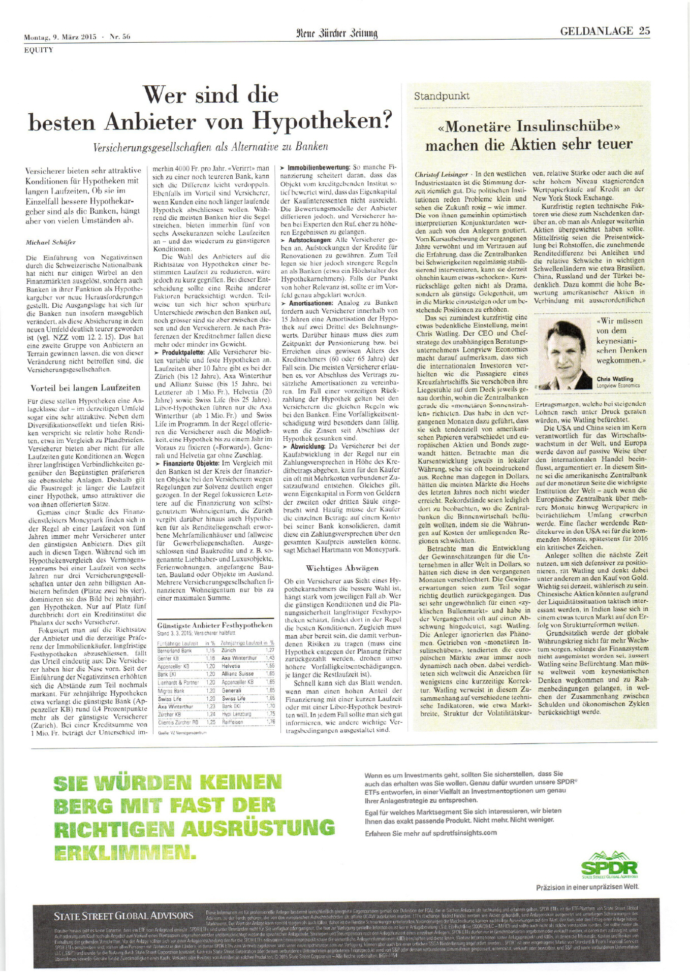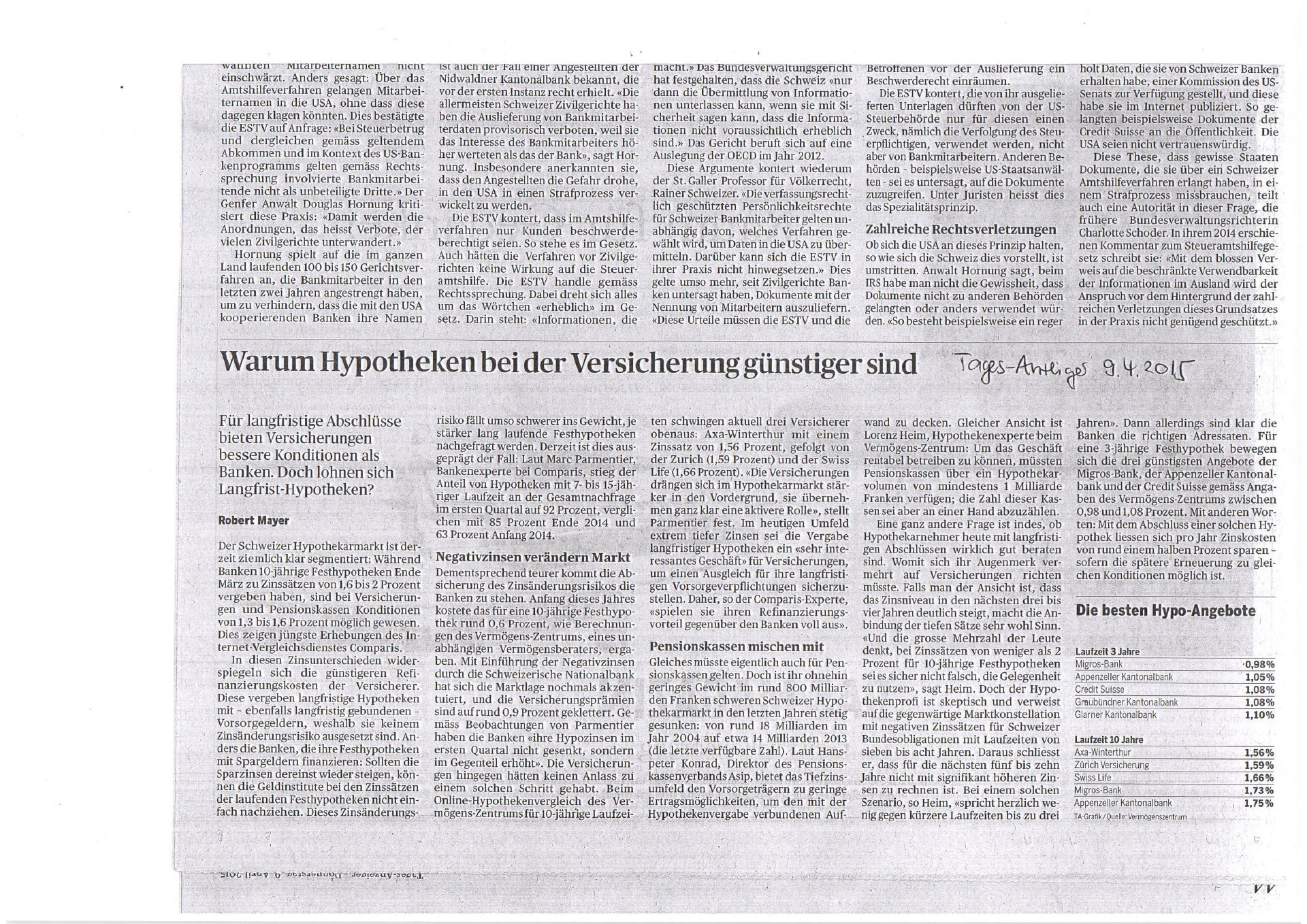 Tages-Anzeiger | Warum Hypotheken bei Versicherung günstiger sind ( Datei)